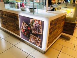 Located inside the Jersey Gardens shopping mall, the outside of this gelato kiosk is adorned with our harvest mixed wood. The tongue-and-groove profile makes for easy installation.
